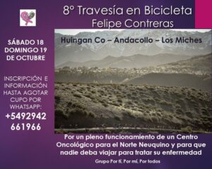 Este 18 y 19 de octubre se realizará una nueva edición de la Travesía Ciclística “xTi, xMí, xTodos”, una propuesta que une deporte, comunidad y una causa profunda: visibilizar la lucha por la puesta en funcionamiento completo del Centro Oncológico de Chos Malal, incluyendo un servicio de Quimioterapia.
